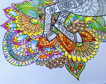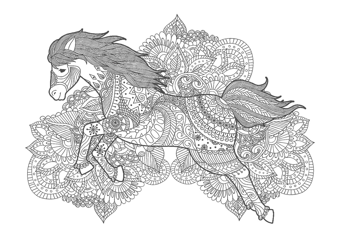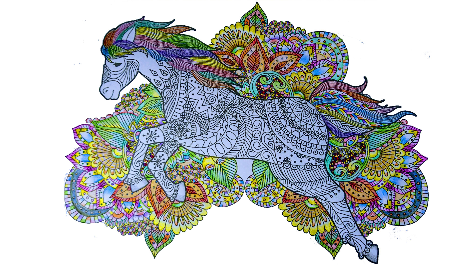 馬のデザインの塗り絵です、馬と後方の模様が細かいですが、やりがいのある作品です。