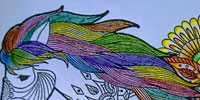 たてがみと馬のしっぽの部分も色をグラデーションにして引き立てました。馬の方の塗り絵は、1色で塗る所と、6色を順々に塗りおしゃれにしました。